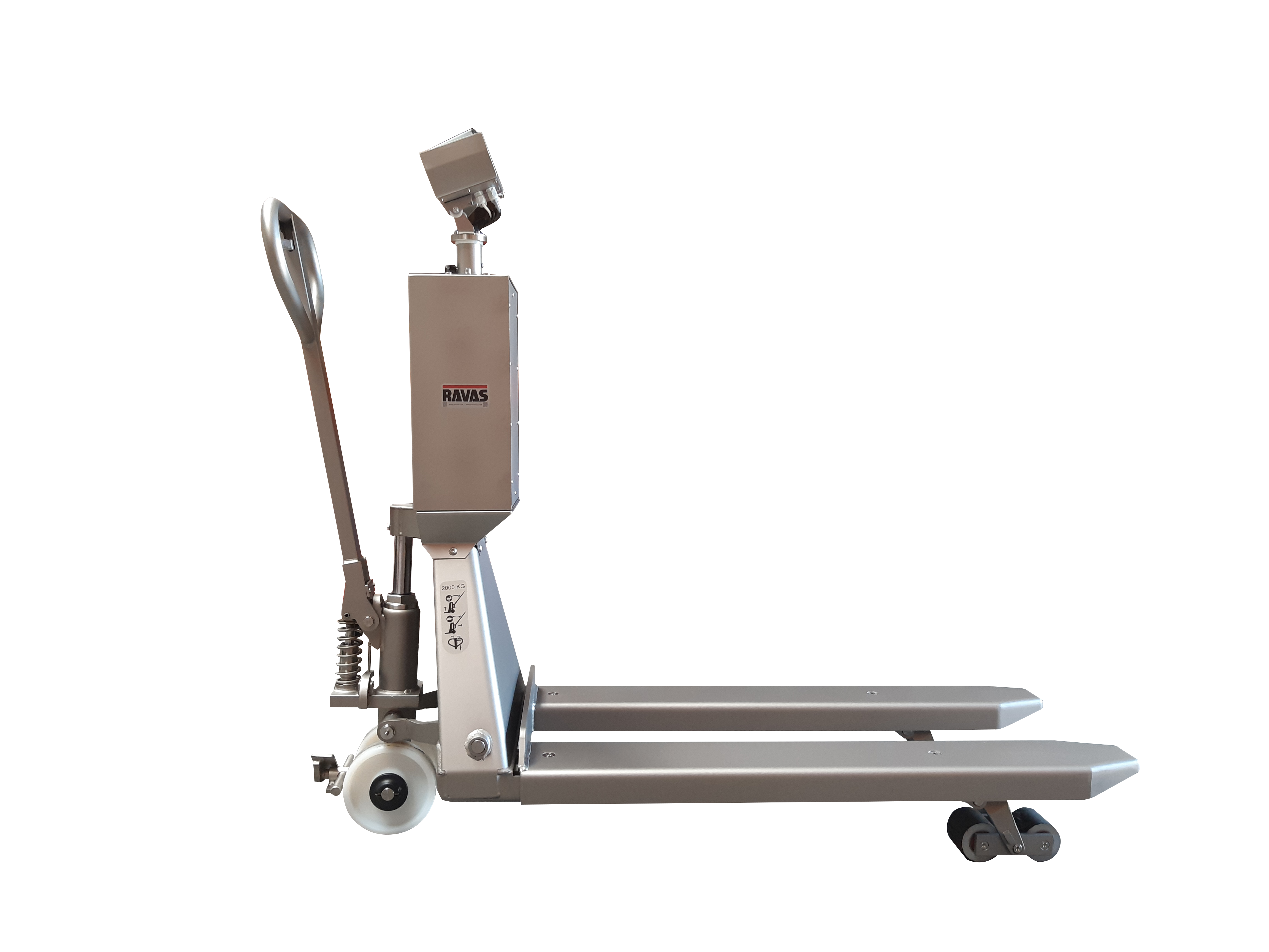 The RAVAS ProLine 5200 INOX has been developed for sectors where hygiene, accuracy and reliability are essential. Thanks to its robust stainless steel construction and powerful lithium battery, this weighing pallet truck performs effortlessly in environments with strict cleaning requirements or intensive daily use.
